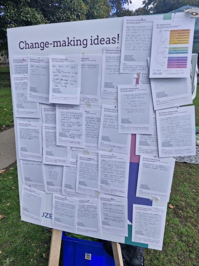 On 21st September a small team of INFUZE researchers descended on Horsforth Hall Park to join a day of climate action festivities with everyone from the orchestra of objects (making music with found things) to repair cafes, bike fixers and apple pickers.
