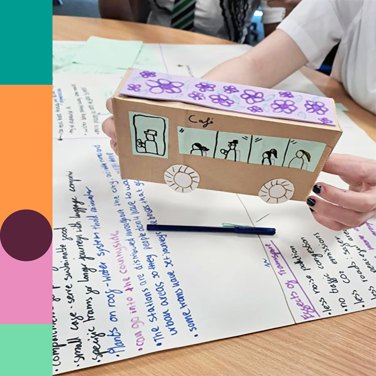 A selection of Year 10 students at four local schools took part in our creative workshops. The young people came up with alternative uses for car parking spaces, generated their own design projects to improve their local area, and prototyped transport alternatives.